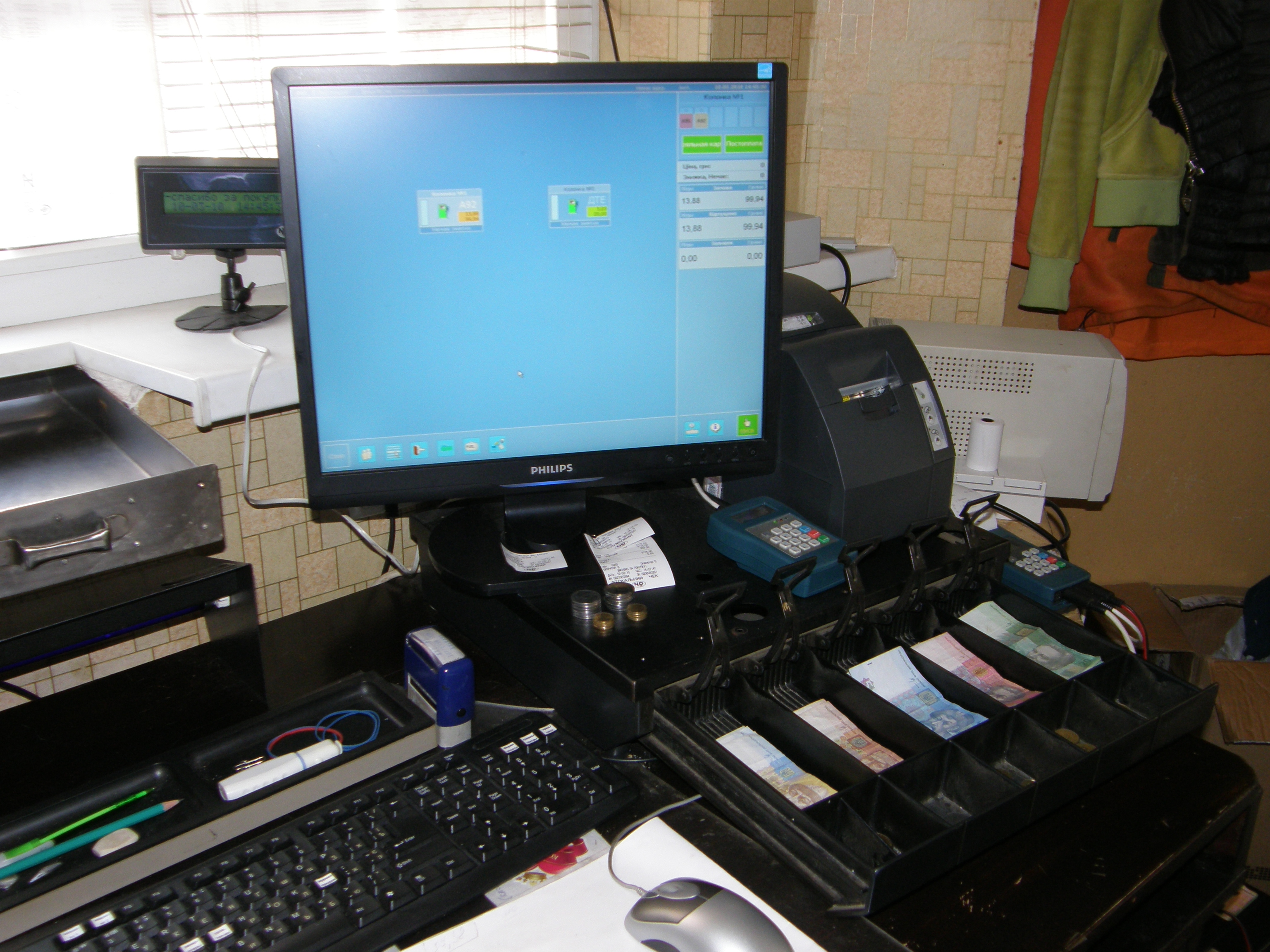Это оборудование было предоставлено нашим партнером, компанией «НПФ "ХаКо», специализацией которой уже более 10 лет является производство электронной «начинки» для топливораздаточных колонок и автозаправочных станций. Данное оборудование имеет сертификат по взрывозащите, а также занесено в Государственный реестр средств измерительной техники Украины и допущено к использованию Госдепартаментом по надзору за охраной труда.